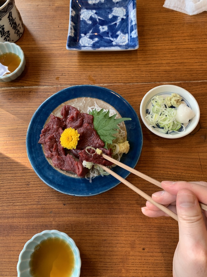 In November of 2020 we took a short one-night trip to Matsumoto City, a castle town in Nagano Prefecture. It takes a little less than three hours from Tokyo Station on the Chuo Line Express Train called Azusa to get there. The city is famous for its castle, which is one of the few original castles still in existence. The city is also famous for its soba noodles and basashi (馬刺し), horsemeat sashimi.