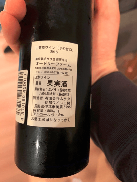 We have written about Yama Budo Wine before, so if you are unfamiliar with this little-known wine and the grape from which it is made, please use the search function to read our previous postings. Recently, we had the good fortune to taste Yama Budo Wine from Ina Wine Factory (伊那ワイン工房), a family-run winery in Nagano Prefecture close to the border with Yamanashi. If unblended, Yama Budo Wine is sometimes described as being “austere.” It is noteworthy for its exceptionally high levels of acidity, which can leave one not merely salivating but nearly drooling. To temper the beast therein, it is sometimes blended with Cabernet Sauvignon, a varietal that itself occasionally requires the moderating influence of, say, Merlot.