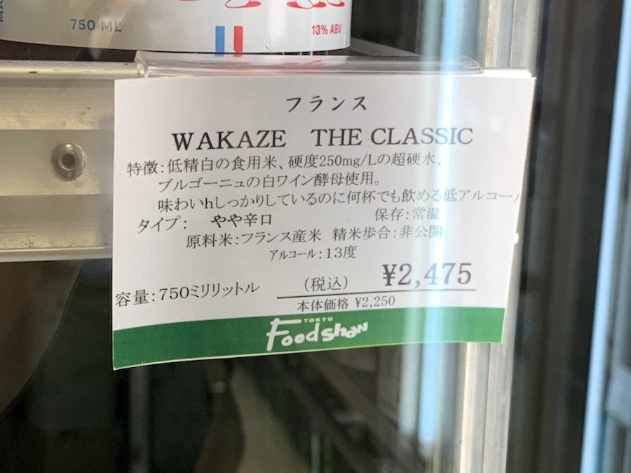 Wakaze is very pale lemon in color, dry, with medium (+) acidity, a somewhat short finish with a bit of bitterness or sourness towards the end. It has an abv of 13%. None of this is remarkable of course, but what follows is. The most impressive aspect of this sake is the similarity it bears to Chardonnay, especially the steely type that emerges from Chablis. Perhaps this is not surprising as there is a Bourgogne connection here. The sign at Tokyu Department Store, where we bought it, states that yeast normally used for white Burgundy is used to make it. If other tasters share our perception, it means that this sake shouts at stentorian decibel levels “TERROIR!” And the possibilities are endless.