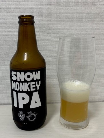 From time to time the feral critters of Japan have a tendency to act up. This is especially true of the monkey population, some of whom enjoy sharing a bath with their human cousins. We are not especially fond of having monkeys share a tub with us, but we are very interested in their relationship with alcohol. These animals, at least many of them, like to drink. Mark Forsyth tells of an island off the coast of Panama where mantled howler monkeys engorge themselves with “the fallen fruit of the astrocaryum palm (4.5 percent ABV). They get boisterous and noisy….”1 I guess that’s why they call them howler monkeys. Interestingly, he doesn’t reveal the name of the island. Perhaps he does not want the word to get out to the international simian community. Mounting evidence suggests that our closest relatives (No, I’m not talking about your uncle Fred) have a rudimentary understanding of the fermentation process. A recent report by RTE News contains this revelation: “At least three species of primates are known to knock ripe fruit to the ground and return later to eat it, when the alcohol content is higher.”2 With all of this information swirling around our brains, we opened a bottle of Shiga Kogen’s Snow Monkey IPA, so named in honor of Snow Monkey Park, which is about eleven minutes away from the brewery.