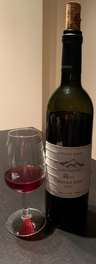 It is not often that one comes across a Japanese Cabernet Franc. This varietal is closely identified with the Middle Loire Valley, especially places like Chinon AOC, and Bordeaux, where it is often a blending partner with the more muscular Cabernet Sauvignon, but in this offering by Votano Wine one can see that in the hands of a skillful vintner, which is what Votano obviously has, the potential for making Nagano Prefecture a go-to-place for Cabernet Franc is significant.
