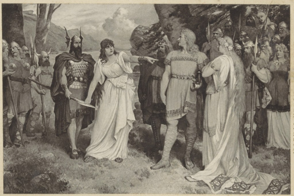 *Fotoreproductie van een schilderij van scene uit de opera Götterdämmerung – 1896 – Rijksmuseum, Netherlands – Public Domain.
