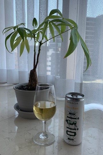 This little can of South Africa’s most popular white variety—Chenin Blanc—made the beautiful spring day on which we tasted it even better. Chenin Blanc is, according to Wine Grapes, “the most widely planted variety in the country.”1 Audacia’s Chenin Blanc is off-dry with medium (+) acidity, and 13.5% ABV. Primary notes of pineapple, peach, straw, apple, and honeysuckle and a hint of oak make this a pleasure to drink. Furthermore, no sulfites are used in its production. It is naturally preserved with honey bush and rooibos, according to information on their flyer. And the rebus on the label is a nice touch, too.