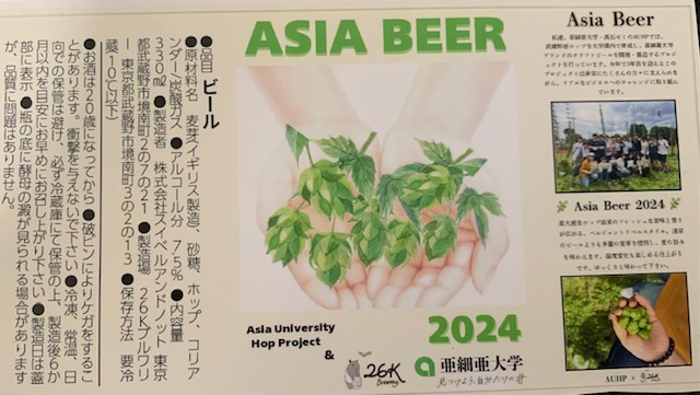 We have always been partial to practical education here at drinkingjapan.org. Why spend your precious time conjugating Latin verbs if you are not going to become emperor of Rome? And it’s a little too late for that, right? So, when we learn of a university project that engages students in an activity that is professional, creative, and has the potential to ignite the entrepreneurial spark among many of them, we take notice. This is especially true when the product is alcoholic, in this case beer. We have written about Asia Beer and the Asia University Hop Project before, so readers can do a search and find additional information.