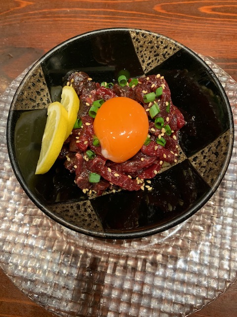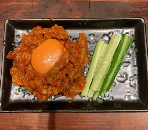 Typically, such restaurants offer beef tongue sliced thick or thin, rice with an admixture of barley, a clear tongue soup that is occasionally slightly peppery, some pickles, and a small bowl of grated yam (ヤムイモ). We highly recommend this.