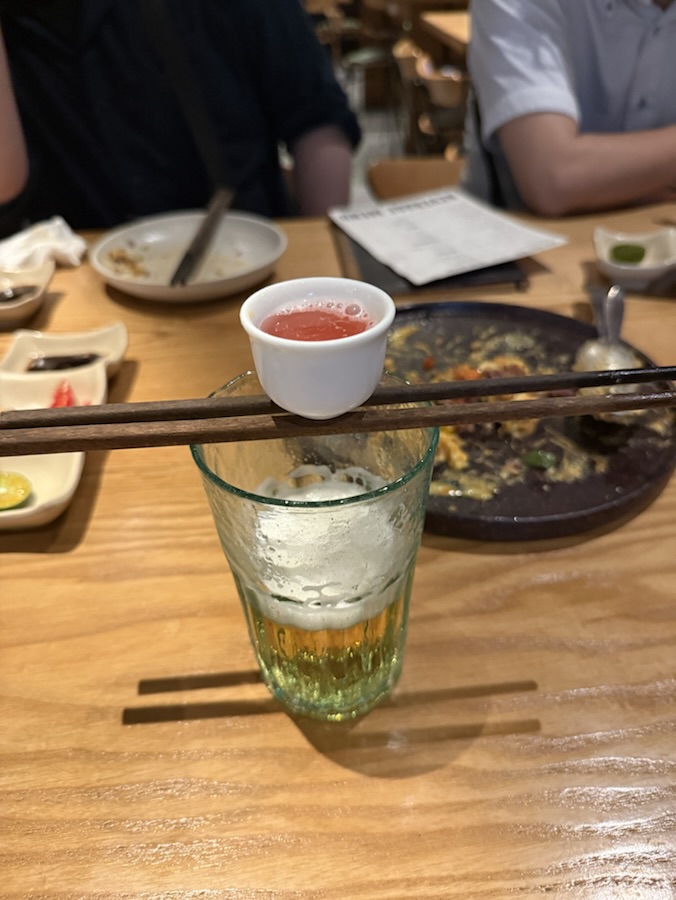 Next I moved into the sake bomb. Here you can choose the craft sake to be deposited into the beer. I chose Pineapple Chili sake made from ST25 rice. I tasted the sake first. The slight heat from the chilis was pleasant. This is a flavored sake I wanted to have again. Then I let the shot of sake fall into my beer and chugged it down. Just for a second I felt like a teenager again.
