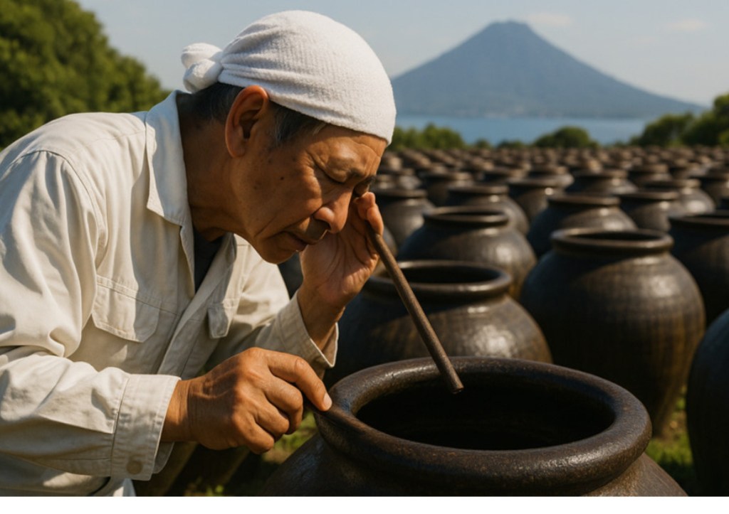 When I walked into JFEX 2025 (summer) at Tokyo Big Sight, vinegar was not on my mind. Shortly after I entered, it was. I encountered a booth run by a company marketing what they call “Specialist Vinegar,” a catchy term that I believe is synonymous with “craft vinegar.” I tasted a number of their offerings and was quite impressed with all of them. But what really got my attention was their Gaba Berry drink, which is a vinegar comprised of cacao and blueberry. This is a non-alcoholic beverage that is made in Kyushu. The picture above will give you a good idea of the production process.
