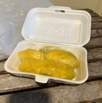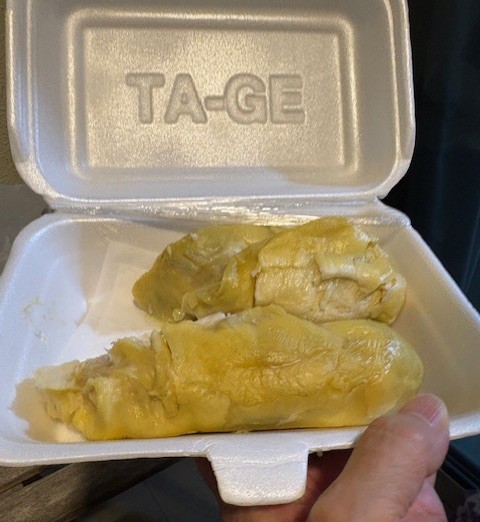 I happened to be in Singapore at the height of durian season there. (It’s a movable feast kind of thing.) I ate my fill of this best of all fruits, which I have been avidly consuming for over four decades. This time I had the opportunity to do some comparison tasting. It was the first time I had ever done that. One of the most striking things for me was the difference between cheap and expensive. The former was very sweet and creamy but lacked depth and complexity. The latter had the expected crème brûlée qualities of course but evidence of fermentation was quite noticeable, which rendered it not dissimilar to a low-alcohol eggnog. The slightly fermented version had, as might be expected, a lower level of sweetness.